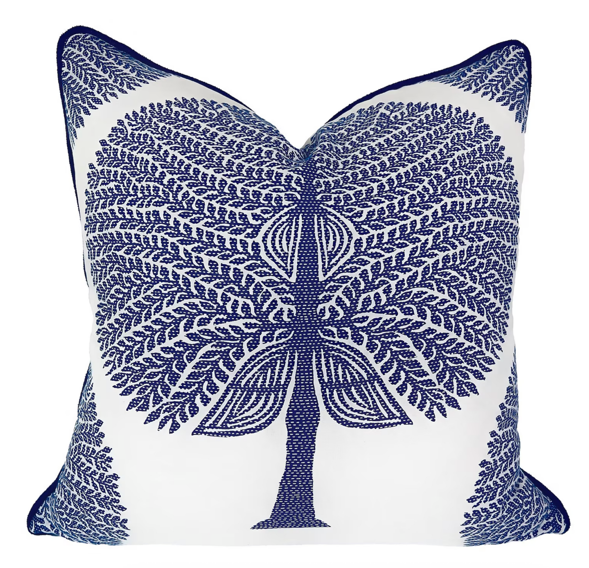 The Thibaut Down Feather Pillow features a refined navy blue welt accentuating its crisp solid white reverse, offering a sophisticated touch to any living space. Crafted with a high-quality down feather insert, it ensures plush comfort and lasting support. Measuring 22" x 22", this pillow includes a discreet zipper closure for easy care and maintenance, making it both elegant and practical for expert-level home styling.